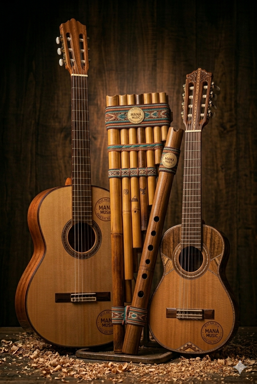 Maná Music es el epicentro de la luthería boliviana, dedicado a la creación de instrumentos de alta gama con maderas nobles y técnicas ancestrales. Cada guitarra, charango y quena es una obra de arte única, diseñada para ofrecer una acústica superior que satisface las exigencias del músico profesional y trasciende generaciones.